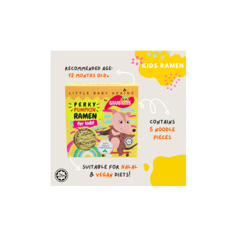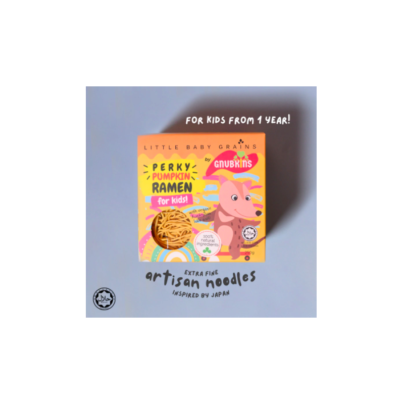This ramen contains pumpkin which is rich in Vitamin A and beta carotene, great for perking up immunity! Noodle length has been customised for kids so no cutting is required. Easy to cook, cooking on a stovetop takes about 4-5 minutes.