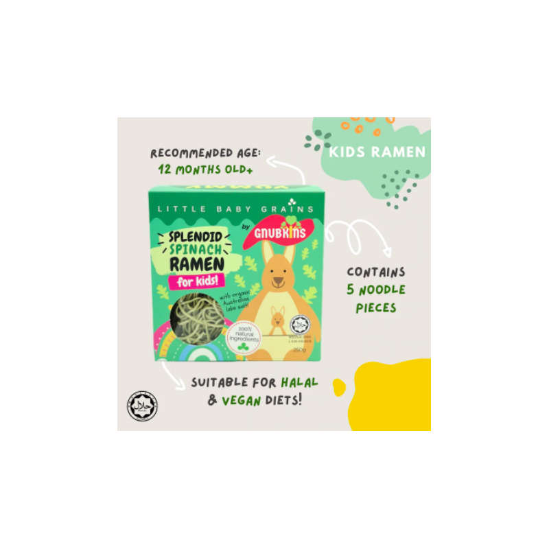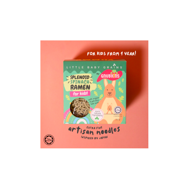 This ramen contains spinach which is splendidly endowed with essential minerals and aids hydration! Noodle length has been customised for kids so no cutting is required. Easy to cook, cooking on a stovetop takes about 4-5 minutes.