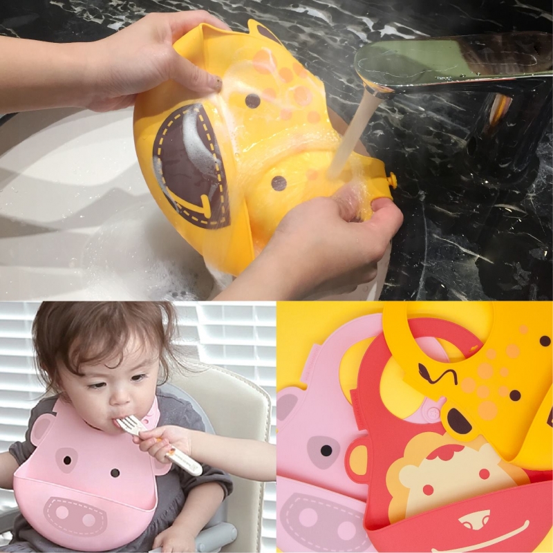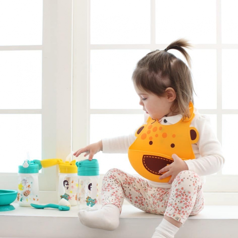 Our baby bibs are molded from BPA and Phthalate free materials. Choose from Ollie the Elephant, Willo the Whale, Pokey the Piglet, Marcus the Lion Cub, Lucas the Hippo, and Lola the Giraffe.