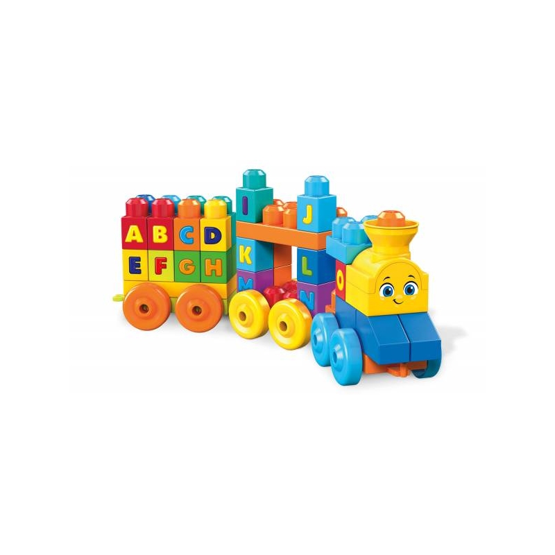 Connect the three rolling wheelbases together and stack the letter blocks on top to learn the alphabet or even build whole words.