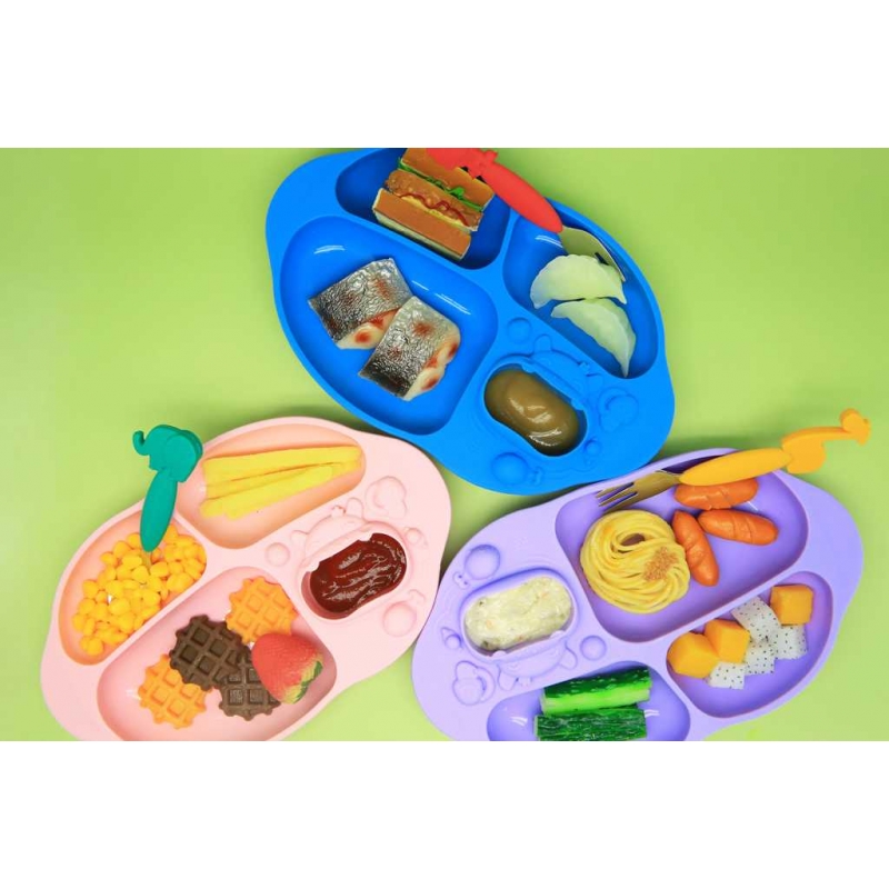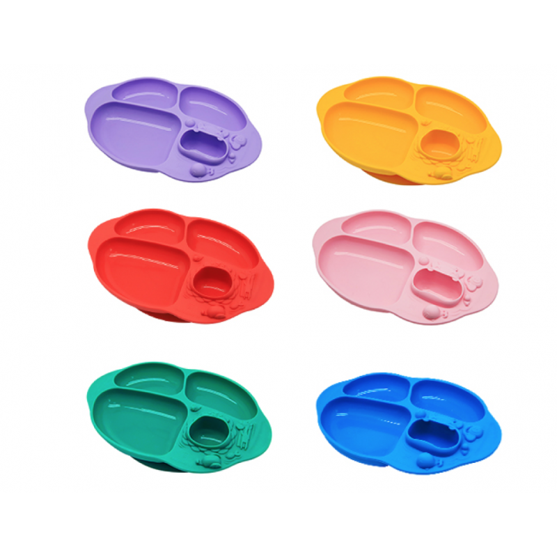 Our Yummy Dips Suction Divided Plate is divided into recommended portion sizes for easy meals and features a dipping compartment for delicious condiments.