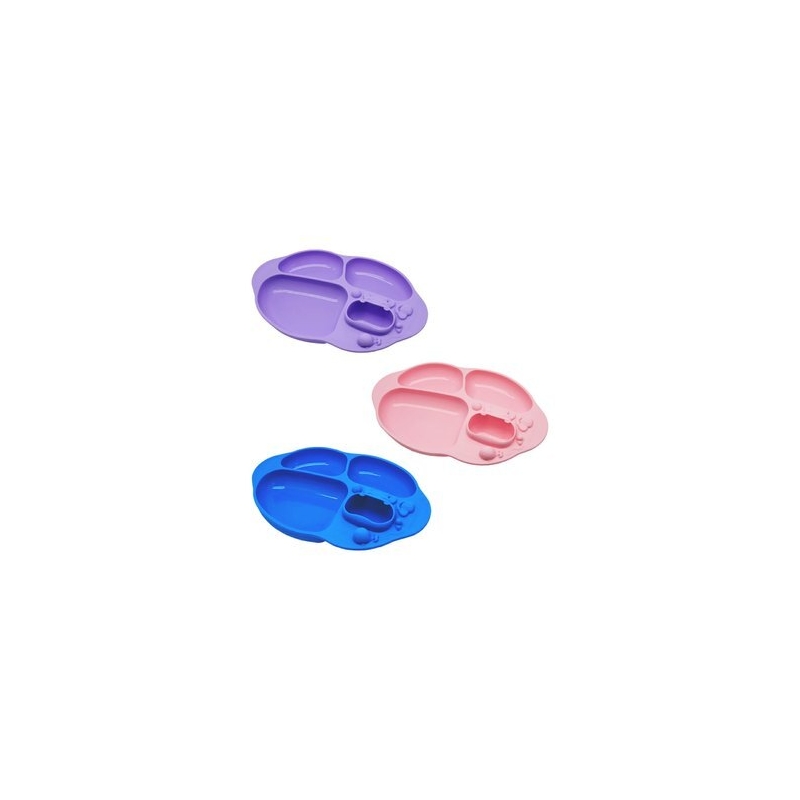 Our Yummy Dips Suction Divided Plate is divided into recommended portion sizes for easy meals and features a dipping compartment for delicious condiments.