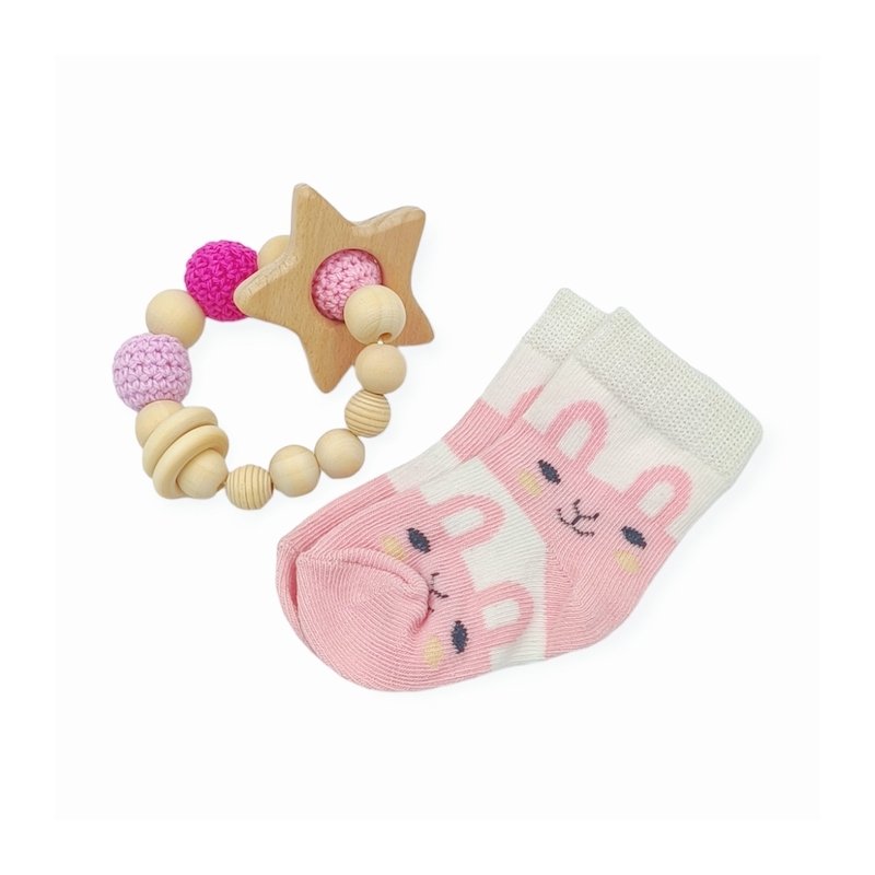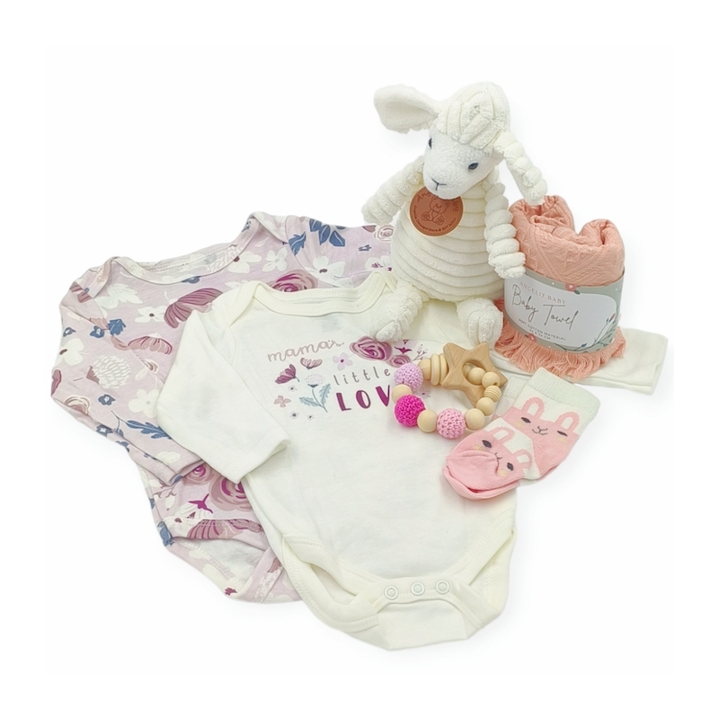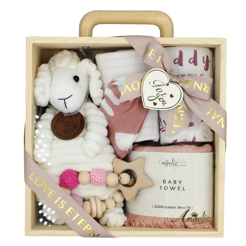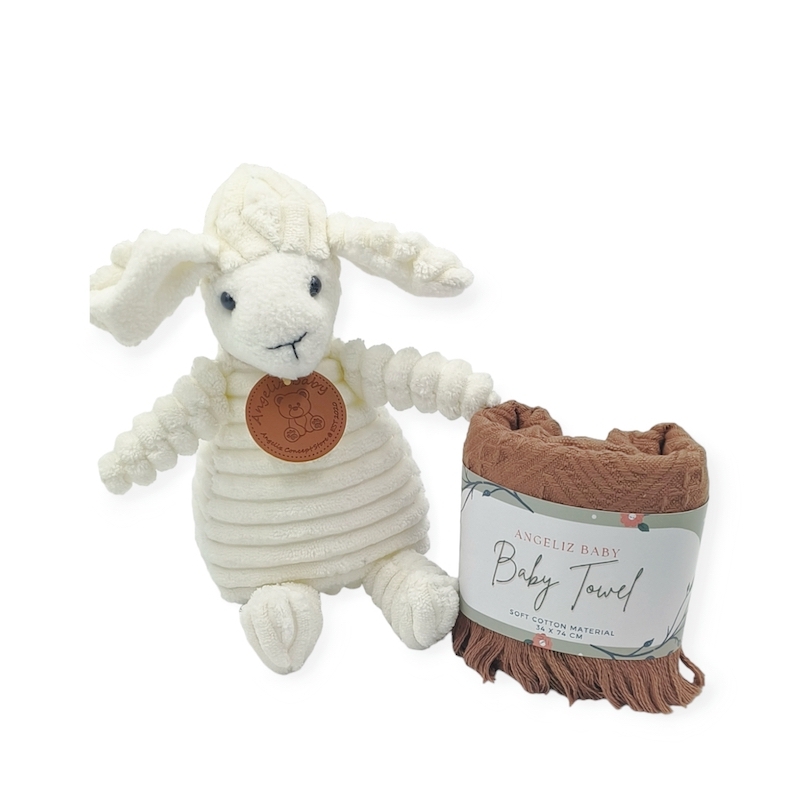 This adorable set includes adorable hugging toy sheep and cozy long sleeve romper, cute socks, attractive wooden teether , a fluffy towel, a Crafted with care and love, every item in this set is perfect for your baby's needs. With the Lovely Beginner Wooden Set, your baby will be wrapped in warmth and cuteness from head to toe.