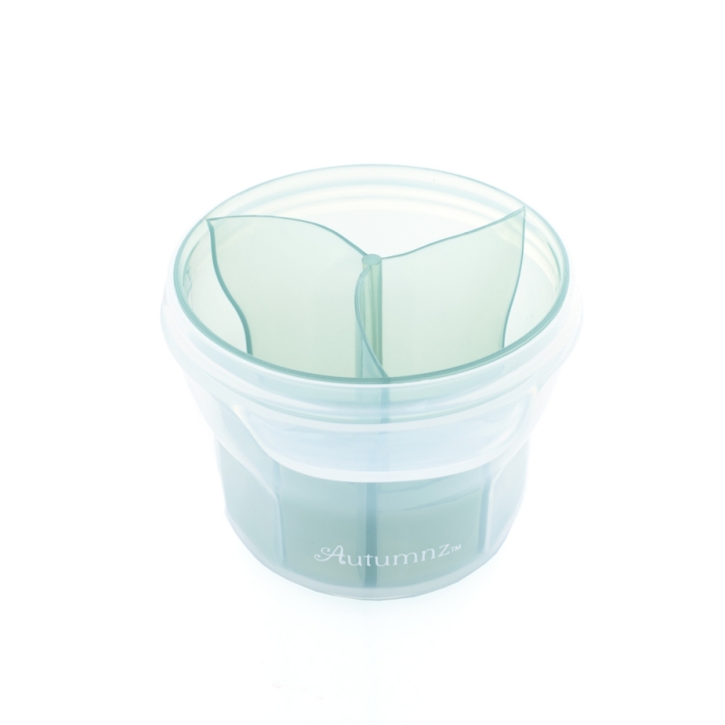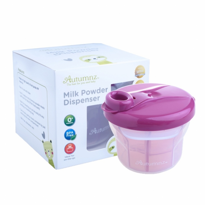 Autumnz Milk Powder Container is extremely useful when you are outside and need to make a quick meal for your child. It holds pre-measured milk formula. The snap on lid shuts the container tight, preventing unwanted spills. The body is made of clear, see-thru material thus it is easy to see the contents. Its compact size makes it the ideal dispenser among many others!