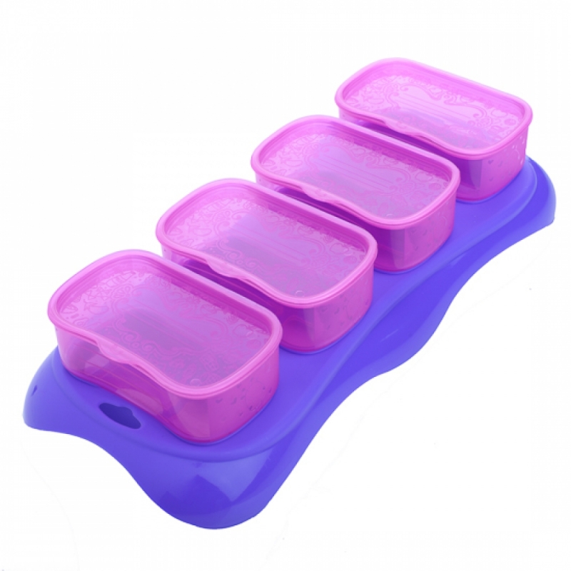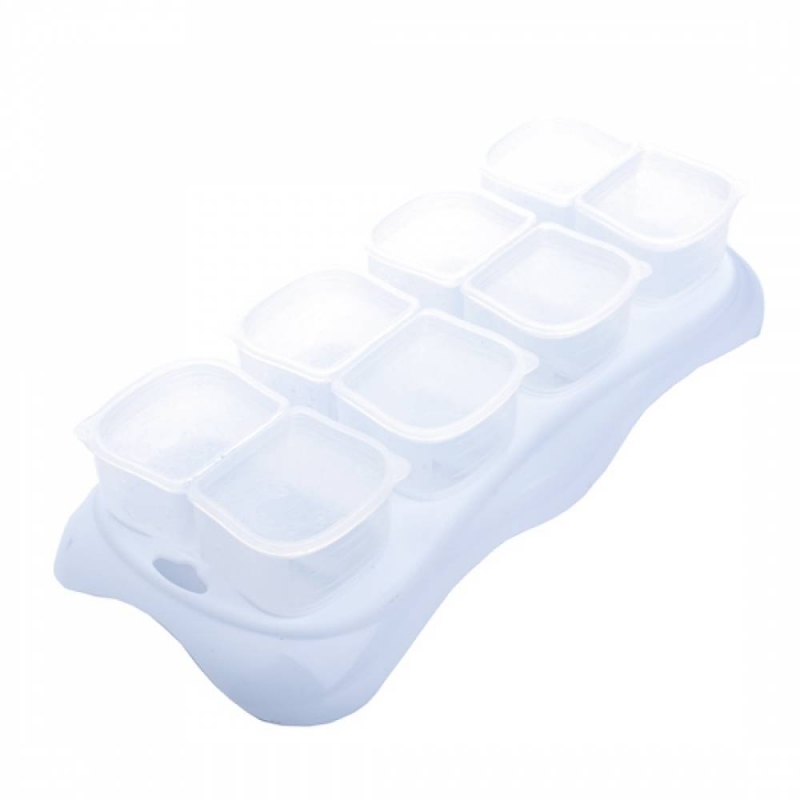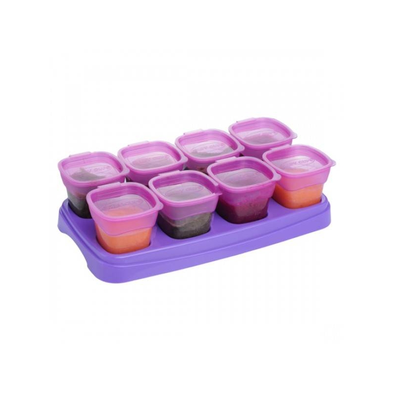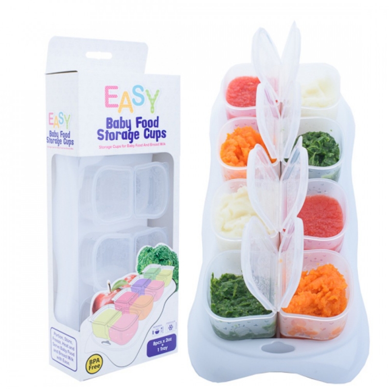 It is stackable, which saves up space in your fridge. Microwavable containers and BPA-free, totally safe for your baby. Comes with eight small cups and a tray with good fitting. Also, different colours are available to choose from.