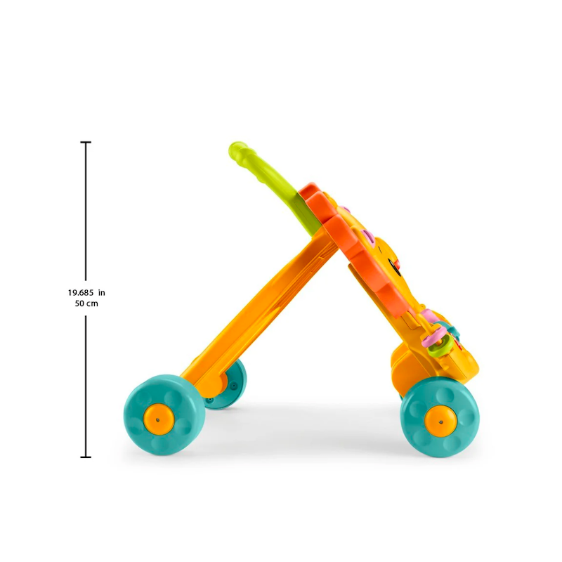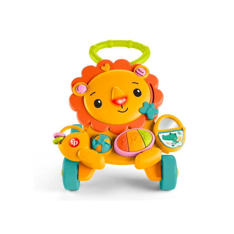 With lights, sounds and 8 different busy activities, Fisher-Price Musical Lion Walker encourages younger babies to Sit & Play…batting, spinning, flipping, pressing, clacking, slidingand playing peek-a-boo in the mirror, too! And when baby’s ready to pull up, stand and walk, this sturdy lion friend bravely helps steady baby’s first steps. Lights, sounds and music play as baby pushes lion along, encouraging little walkers to keep going.